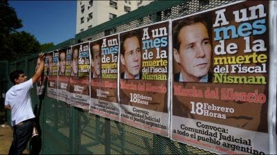 de conspiración. Lo traumático de la muerte pone el foco en las bambalinas del poder, en los enfrentamientos y en los intereses en disputa. Lo que ya pasará a llamarse “el caso Nissman” remite, históricamente, al cruce entre poder y –probablemente– psicología: un fiscal que cruza la raya de su cometido judicial e ingresa en los territorios farragosos y turbios de los llamados “servicios de inteligencia” tantos nacionales como extranjeros. Una oposición que exhibe obscenamente el cadáver como maniquí de sus limitaciones y una “familia judicial” que ya empieza a trasmutar en “famiglia”.  La muerte del fiscal deja un escozor trágico y sorpresivo. Los retazos deshilachados de lo que se llama la “oposición” se miran con complicidad mezquina y se preguntan, entre murmullos, cómo pueden sacarle el máximo rédito al cadáver todavía tibio.